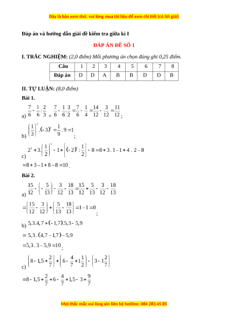 Đáp án và hướng dẫn giải đề kiểm tra giữa kì I ĐÁP ÁN ĐỀ SỐ 1
