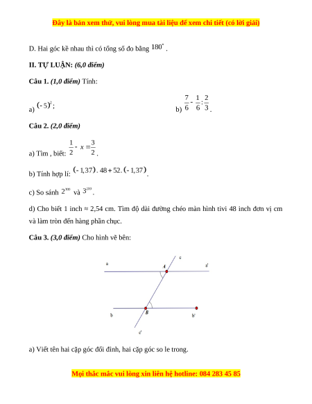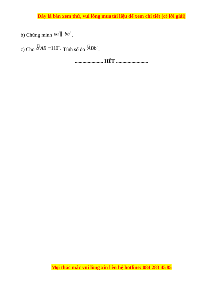 Câu 1. Cho hình vẽ sau, số đo của góc là A. 180°; B. 45°; C. 30°; D. 40°. Câu 2. Qua điểm