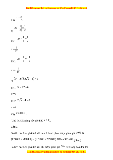 Câu 3 (1,5 điểm) Nhân dịp khai trương, một cửa hàng bánh Pizza giảm giá 10% tất