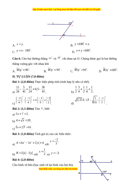 Bài 3: (1,0 điểm) Tính giá trị của các biểu thức: a) với b) với và Bài 4: (2,0 điểm)