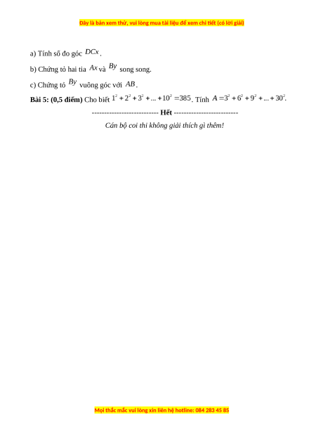 Bài 5: (0,5 điểm) Cho biết . Tính