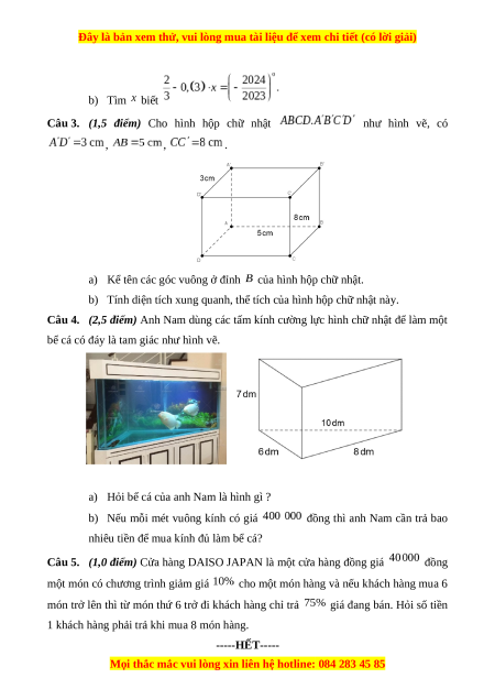 Câu 5. (1,0 điểm) Cửa hàng DAISO JAPAN là một cửa hàng đồng giá đồng