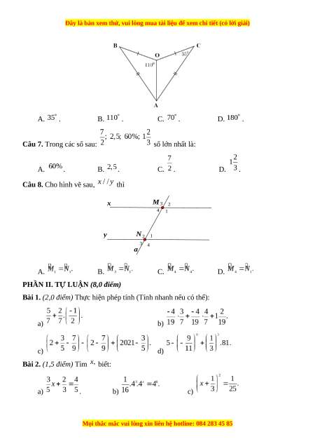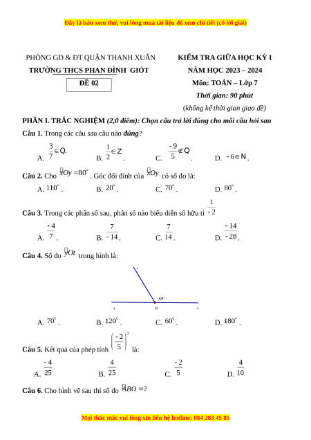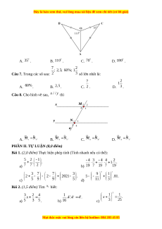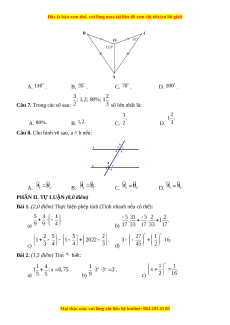 Câu 3. Trong các phân số sau, phân số nào biểu diễn số hữu tỉ A. . B. . C. . D. . Câu 4. Số đo trong hình là: t 120° y O x A. . B. . C. . D. .