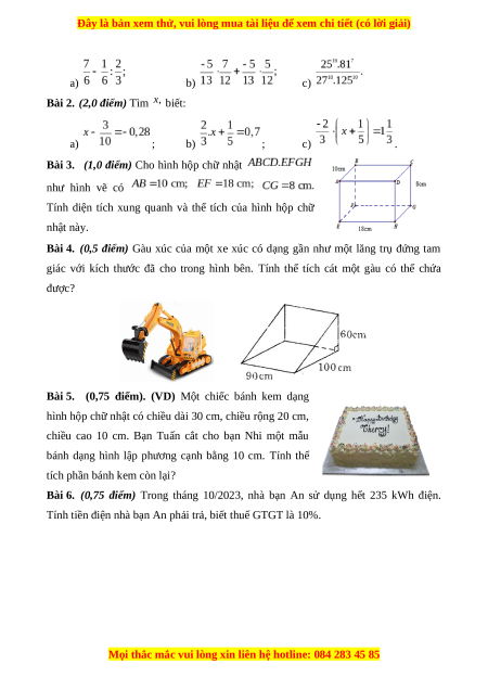 Bài 6. (0,75 điểm) Trong tháng 10/2023, nhà bạn An sử dụng hết 235 kWh điện.