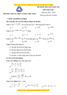 Đề thi giữa kì 1 Toán 7 trường TH&THCS Lương Thế Vinh - Hà Nội