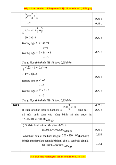 b) Giá bán bánh mì sau khi giảm là: (đồng) 0,25 đ