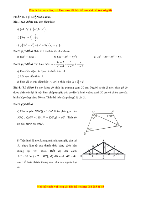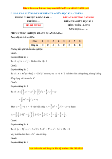 D. ĐÁP ÁN & HƯỚNG DẪN ĐỀ KIỂM TRA GIỮA HỌC KÌ 1 – TOÁN 8