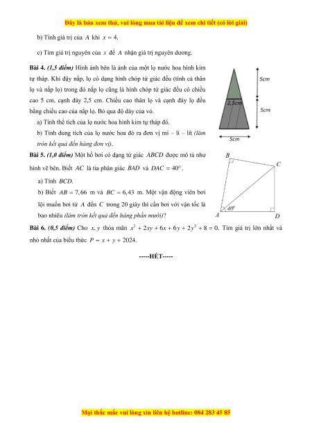 Bài 4. (1,5 điểm) Hình ảnh bên là ảnh của một lọ nước hoa hình kim