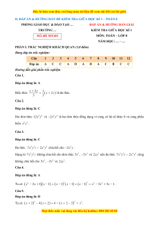 D. ĐÁP ÁN & HƯỚNG DẪN ĐỀ KIỂM TRA GIỮA HỌC KÌ 1 – TOÁN 8