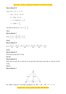 Bảng đáp án trắc nghiệm: Câu 1 2 3 4 5 6 7 8 9 10 11 12 Đáp án A A B B C D C D B B C D