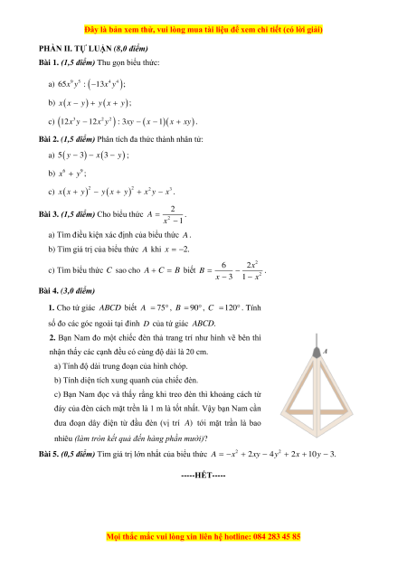 Bài 2. (1,5 điểm) Phân tích đa thức thành nhân tử: