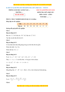 D. ĐÁP ÁN & HƯỚNG DẪN ĐỀ KIỂM TRA GIỮA HỌC KÌ 1 – TOÁN 8