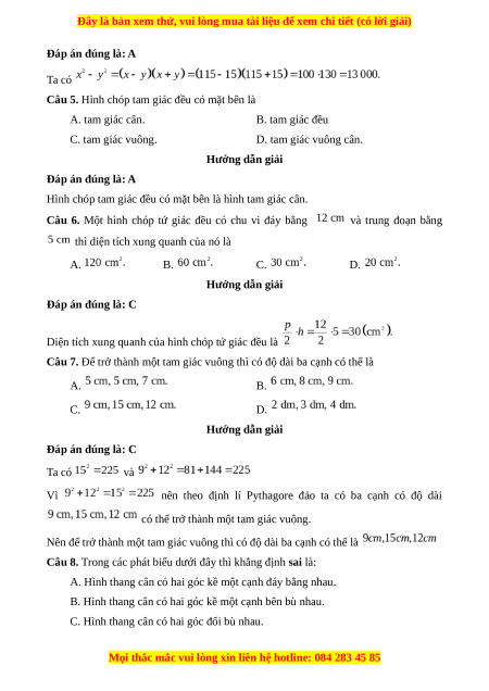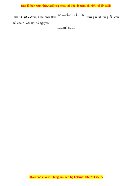 Đây là bản xem thử, vui lòng mua tài liệu để xem chi tiết (có lời giải)