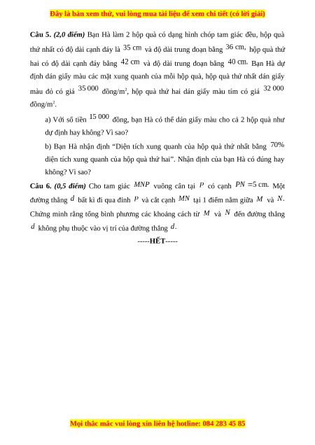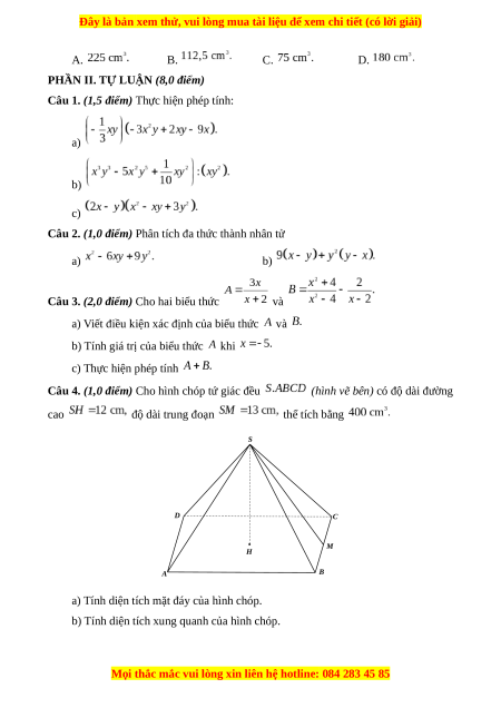 Đây là bản xem thử, vui lòng mua tài liệu để xem chi tiết (có lời giải)