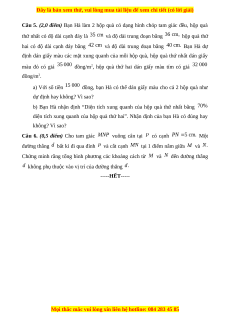 Câu 5. (2,0 điểm) Bạn Hà làm 2 hộp quà có dạng hình chóp tam giác đều, hộp quà
