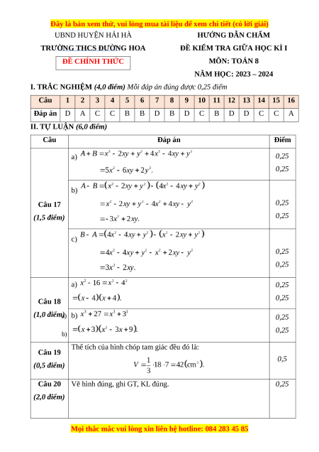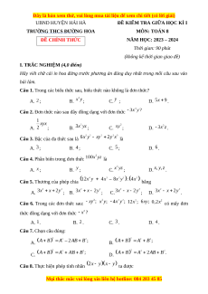 TRƯỜNG THCS ĐƯỜNG HOA MÔN: TOÁN 8 ĐỀ CHÍNH THỨC