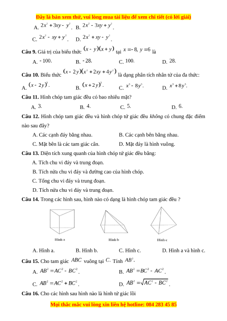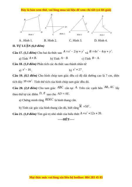 Đây là bản xem thử, vui lòng mua tài liệu để xem chi tiết (có lời giải)