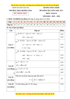 Đề thi giữa kì 1 Toán 8 Cánh diều trường THCS Đường Hoa - Quảng Ninh