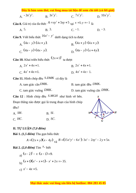 Đây là bản xem thử, vui lòng mua tài liệu để xem chi tiết (có lời giải)