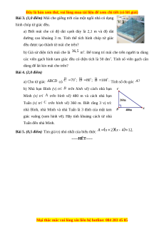 Bài 5. (0,5 điểm) Tìm giá trị nhỏ nhất của biểu thức