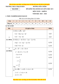 TRƯỜNG THCS THẠCH BÀN HƯỚNG DẪN CHẤM Mã đề 803