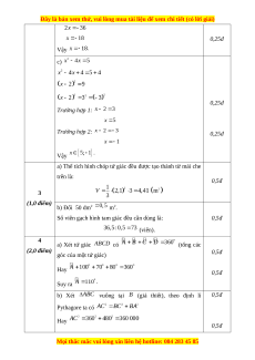 Lời giải sơ lược Điểm 0,5đ 1 0,5đ (1,5 điểm) 0,25đ 0,25đ 2 a) (2,0 điểm) 0,25đ 0,25đ 0,25đ 0,25đ Vậy 0,25đ b)