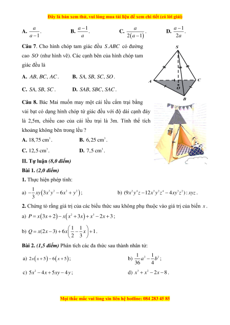 Câu 8. Bác Mai muốn may một cái lều cắm trại bằng