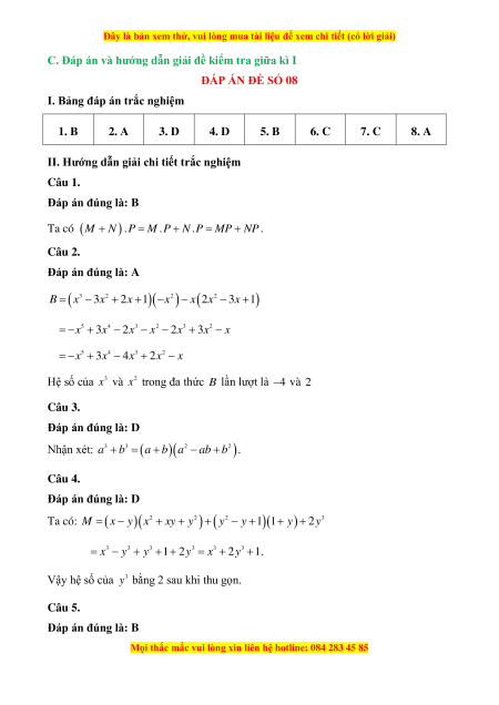 Câu 1. Khi nhân đa thức M N với đa thức P ta được kết quả là