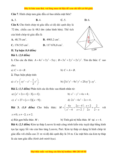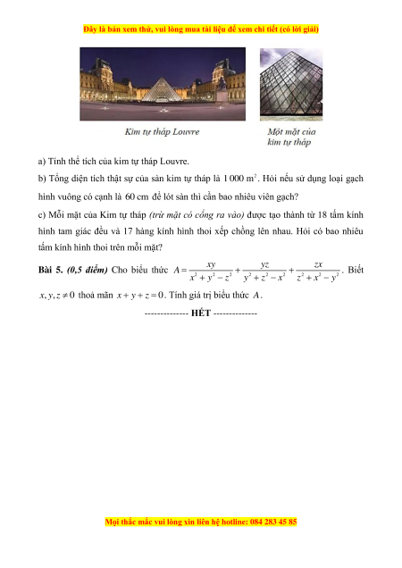 Bài 4. (2,5 điểm) Kim tự tháp Louvre là một công trình kiến trúc tuyệt đẹp bằng kính