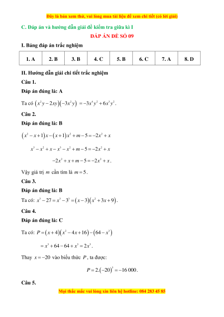 ĐÁP ÁN ĐỀ SỐ 09