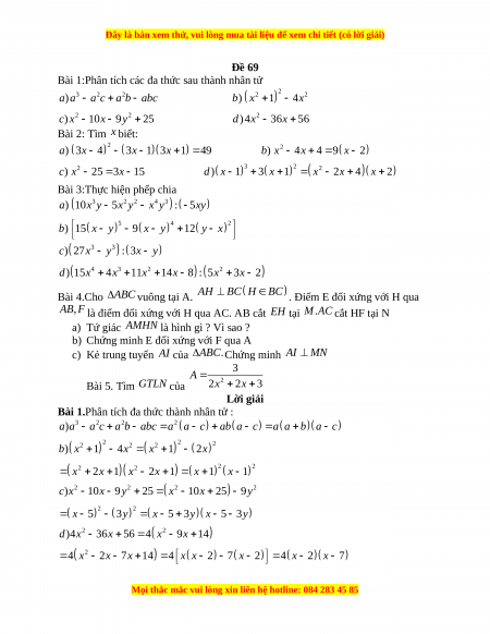 Đề thi giữa kì 1 Toán 8 năm 2023 - Đề 69