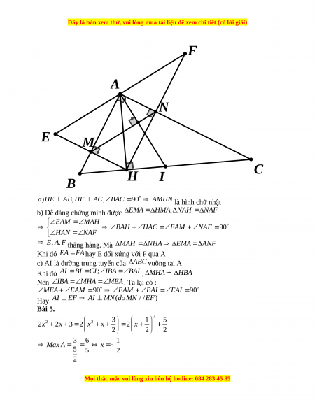b) Dễ dàng chứng minh được E MA H M ; A N AH N AF E AM M AH