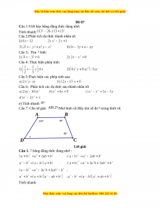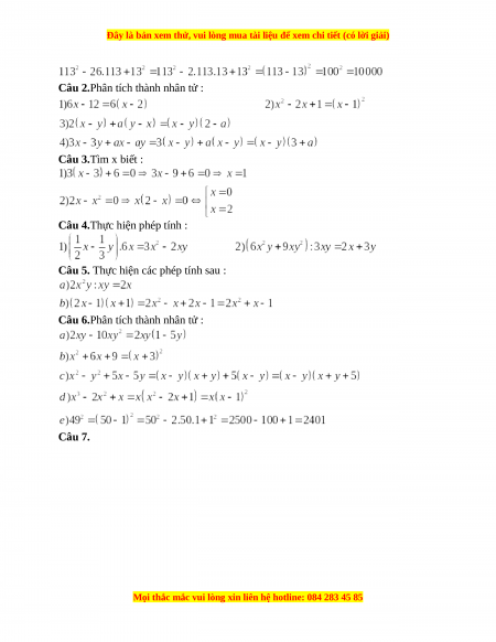 Câu 6.Phân tích thành nhân tử : Câu 7.