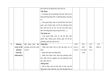 trình và bất phương trình bậc nhất – Nhận biết được thứ tự trên tập hợp các số (Câu 4, (Bài (Bài (Bài 5) phương một ẩn thực. Câu 5) 1.2a, Bài 1.2c) trình bậc