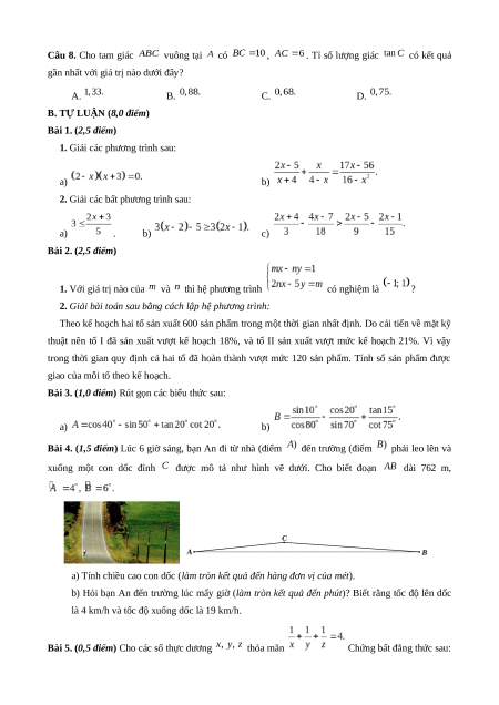 và góc trong tam giác vuông GTTH) vuông (0,5đ) (1,0đ) (1,5đ) (0,25đ)