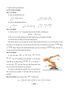 Câu 2. Công thức nghiệm tổng quát của phương trình là A. với . B. với . C. với . D. với . Câu 3. Giá trị