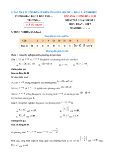 D. ĐÁP ÁN & HƯỚNG DẪN ĐỀ KIỂM TRA GIỮA HỌC KÌ 1 – TOÁN 9 – CÁNH DIỀU