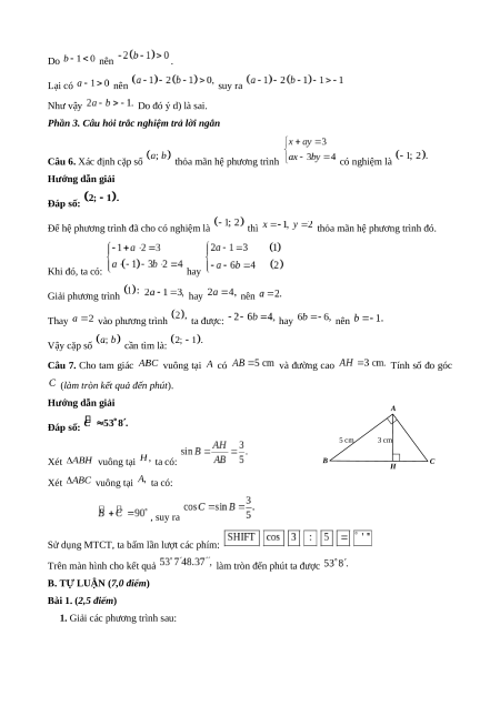 thỏa mãn hệ phương trình có nghiệm là Câu 7. Cho tam giác vuông tại có và đường cao Tính số đo góc