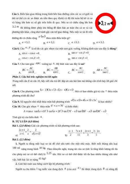 Bài 1. (2,0 điểm) Giải các phương trình và bất phương trình sau: a) b)