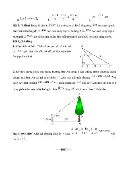Bài 5. (0,5 điểm) Giải bất phương trình ẩn sau: với . -----HẾT-----