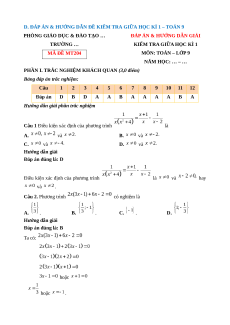 D. ĐÁP ÁN & HƯỚNG DẪN ĐỀ KIỂM TRA GIỮA HỌC KÌ 1 – TOÁN 9