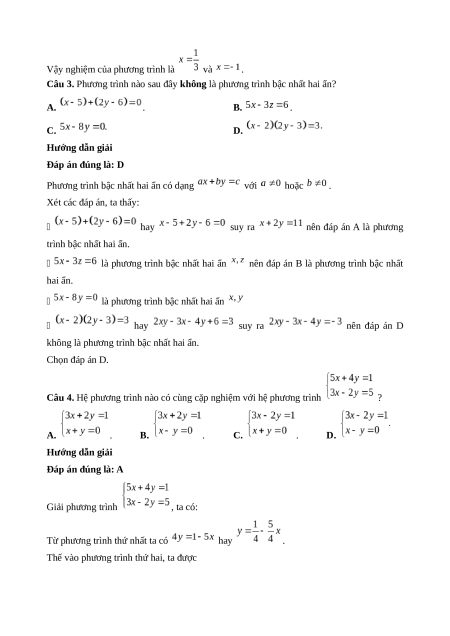Câu 3. Phương trình nào sau đây không là phương trình bậc nhất hai ẩn? A. . B. . C. D.