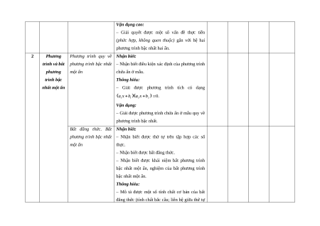 Nội dung kiến thức Nhận Thông Vận Vận dụng Chủ đề đánh giá biết hiểu dụng cao 1 Phương