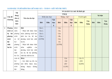 Chủ đề/ Nội dung/ đơn Tự luận TT Nhiều lựa chọn “Đúng – Sai” Trả lời ngắn % Chương vị kiến thức Vận Vận Vận Vận Vận điểm Biết Hiểu Biết Hiểu Biết Hiểu Biết Hiểu Biết Hiểu dụng dụng dụng dụng dụng Khái niệm phương trình và hệ hai