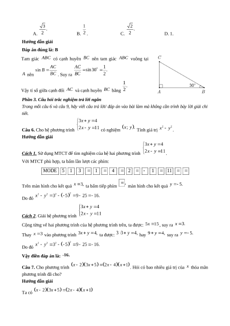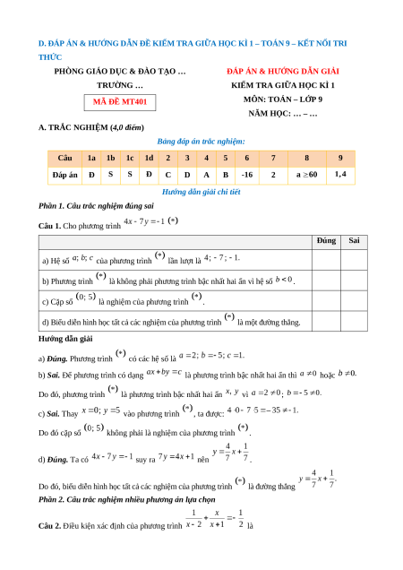 D. ĐÁP ÁN & HƯỚNG DẪN ĐỀ KIỂM TRA GIỮA HỌC KÌ 1 – TOÁN 9 – KẾT NỐI TRI THỨC