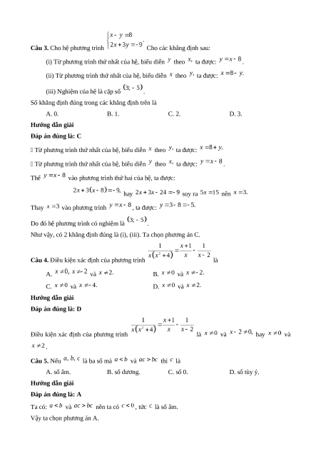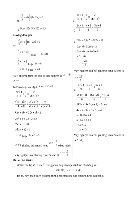 phương trình bậc nhất – Nhận biết được thứ tự trên tập hợp các số (Câu 5) (Bài 1c) (Bài 1d) (Bài 5) một ẩn thực.