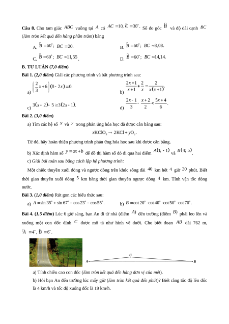 – Số điểm tính cho 1 câu trắc nghiệm là 0,25 điểm/câu; số điểm của câu tự luận được quy định trong hướng dẫn chấm nhưng phải tương ứng với tỉ lệ