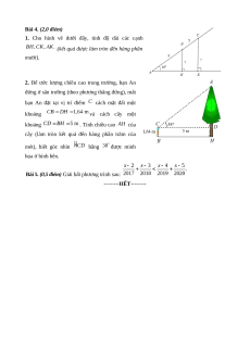 bạn An đặt tại vị trí điểm cách mặt đất một khoảng và cách cây một khoảng . Tính chiều cao của