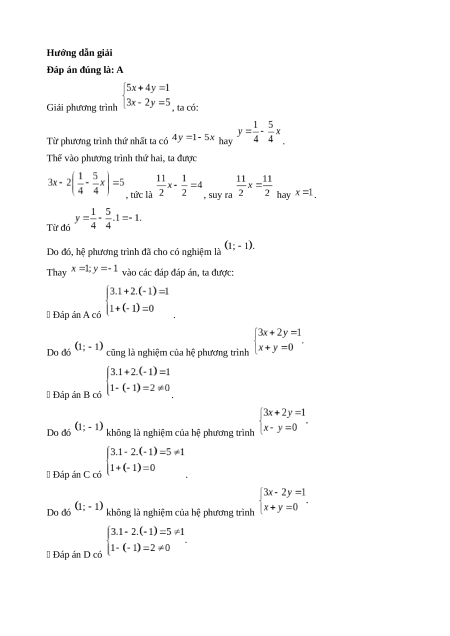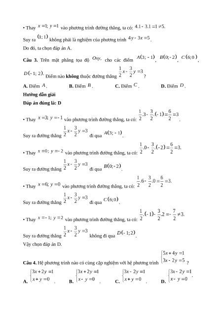 Câu 4. Hệ phương trình nào có cùng cặp nghiệm với hệ phương trình ? A. . B. . C. . D.