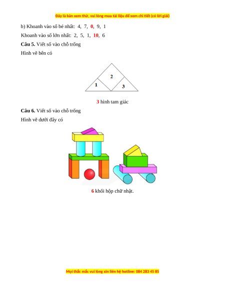 Câu 6. Viết số vào chỗ trống Hình vẽ dưới đây có